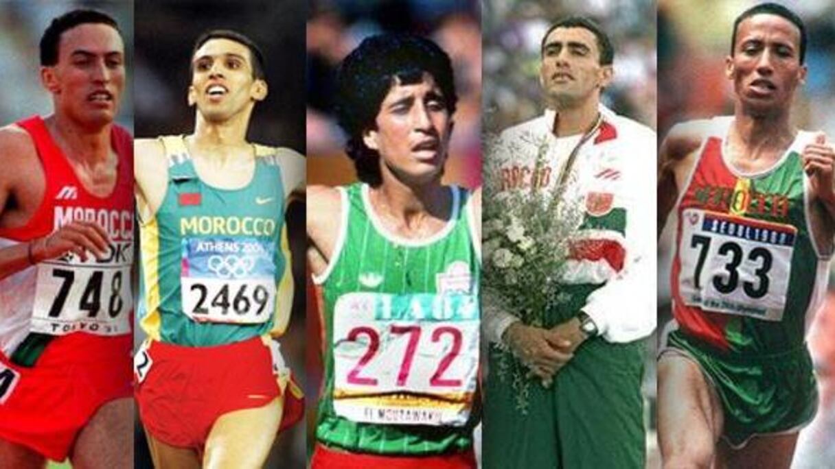 وكان سعيد عويطة (5000م)، ونوال المتوكل (400م حواجز) عام 1984 بلوس أنجلوس، قد توجا بأول ميداليتين ذهبيتين للمغرب، قبل أن يتمكن ابراهيم بوطيب هو الآخر أربع سنوات بعد ذلك أي سنة 1988 في سيول من التتويج بذهبية (10000م)، وخالد السكاح عام 1992 في برشلونة (10000م)، بينما توج العداء المغربي هشام الكروج بميداليتين ذهبيتين سنة 2004 بأثينا في منافسة (1500م و 5000م).
