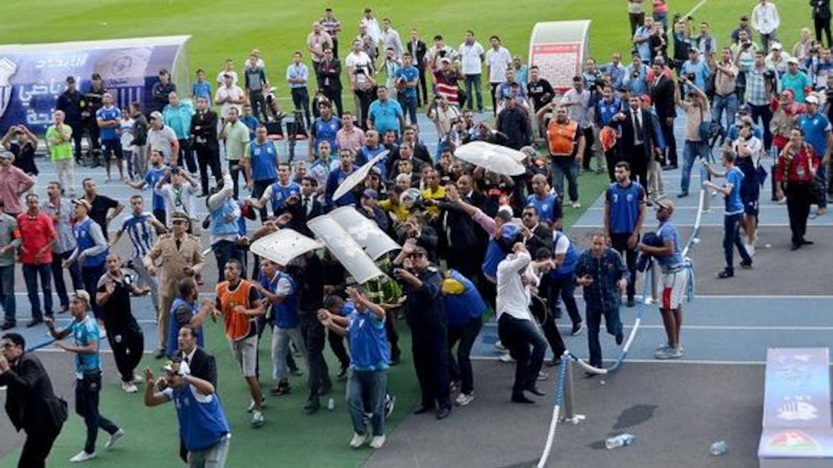 وكان أنصار المغرب التطواني حملوا لافتات عنصرية، كما تم توقيف المباراة إثر اقتحام أرضية ملعب سانية الرمل.