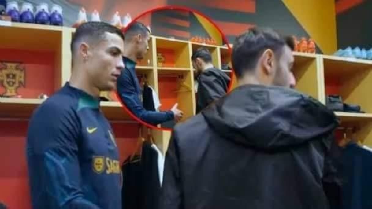 نتشر فيديو عبر وسائل التواصل الإجتماعى "تويتر"، عن تجاهل برونو فيرنانديز زميله كريستيانو رونالدو فى غرف الملابس داخل معسكر البرتغال، ثم عاد يوجه التحية إلي الدون بعدما قدم الأخير يده وقام بإحراجه أمام زملائه.