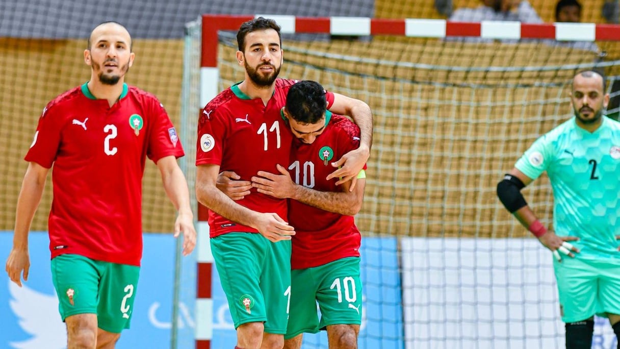 وخرج "أسود الفوتصال" في الشوط الأول بهدفين دون رد.