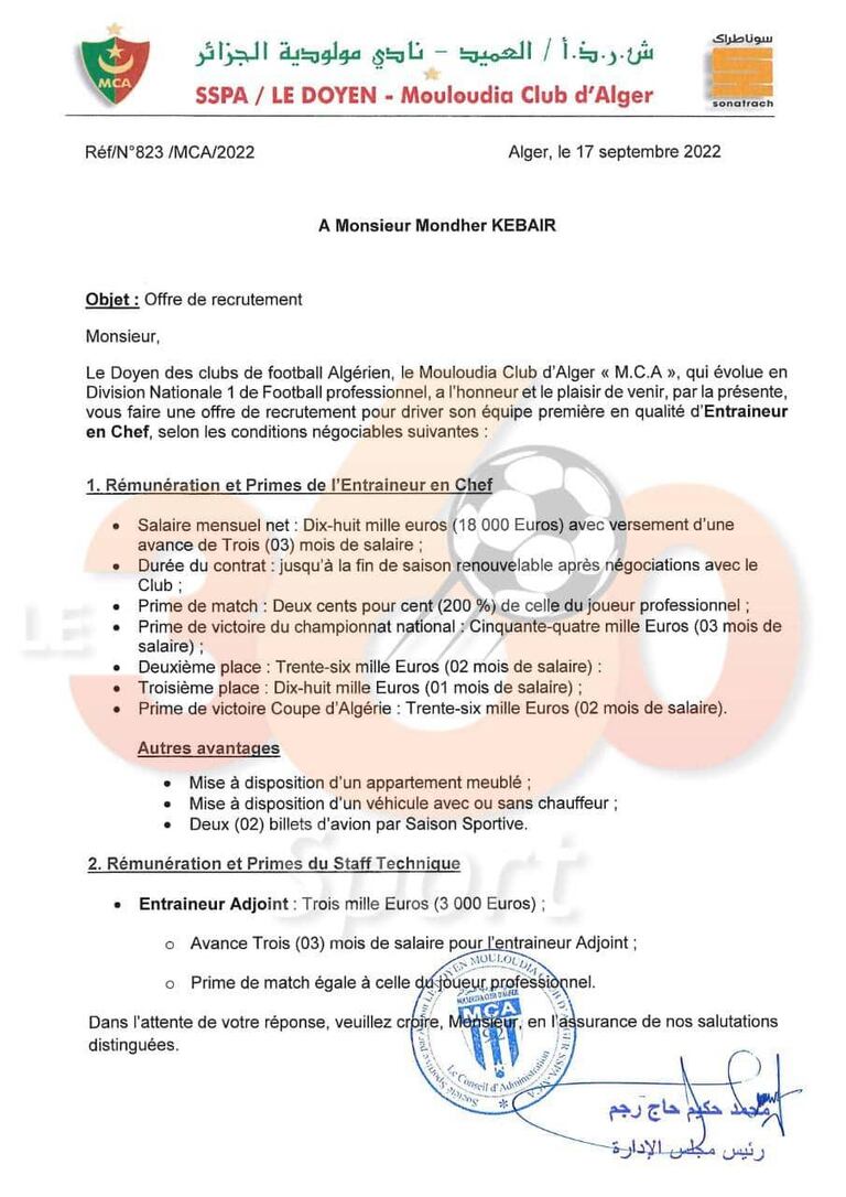 واختار المدربين التونسيين، فوزي البنزرتي ومواطنه منذر الكبير، "لعبة" تبادل الكراسي، إذ كان الأخير وفق وثيقة رسمية مرشحا أولا لتدريب مولودية الجزائر، قبل أن يدير ظهره للفريق الجزائري بعد أن اتفق رفقته على كل تفاصيل عقده ، واختار الانتقال للرجاء الرياضي .