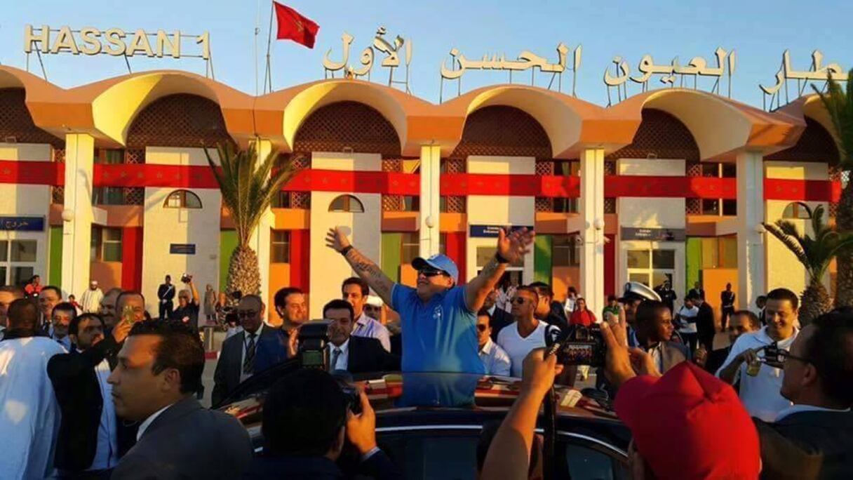 وكان مارادونا قد حل بالمغرب يوم الأربعاء الماضي، قبل أن يشد الرحال إلى مدينة العيون حيث شارك في مباراة استعراضية جمعت منتخب نجوم العالم بمنتخب نجوم إفريقيا والعرب.