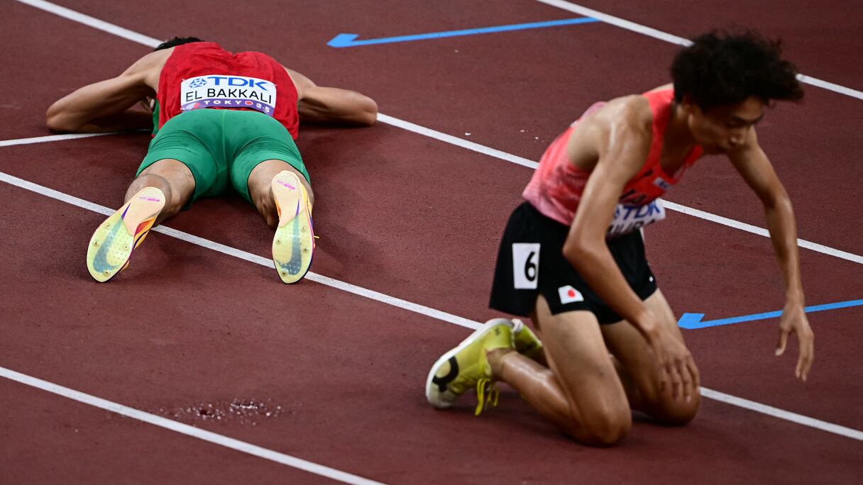 تأثر البطل المغربي سفيان البقالي بعد إنهائه لسباق 3000 متر موانع في المركز الثاني