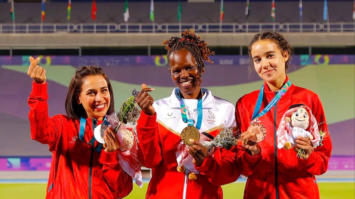 أما الميدالية البرونزية، فكانت مغربية أيضا بواسطة العداءة بهية العرفاوي التي أنهت السباق في المركز الثالث بزمن 4:23.11.