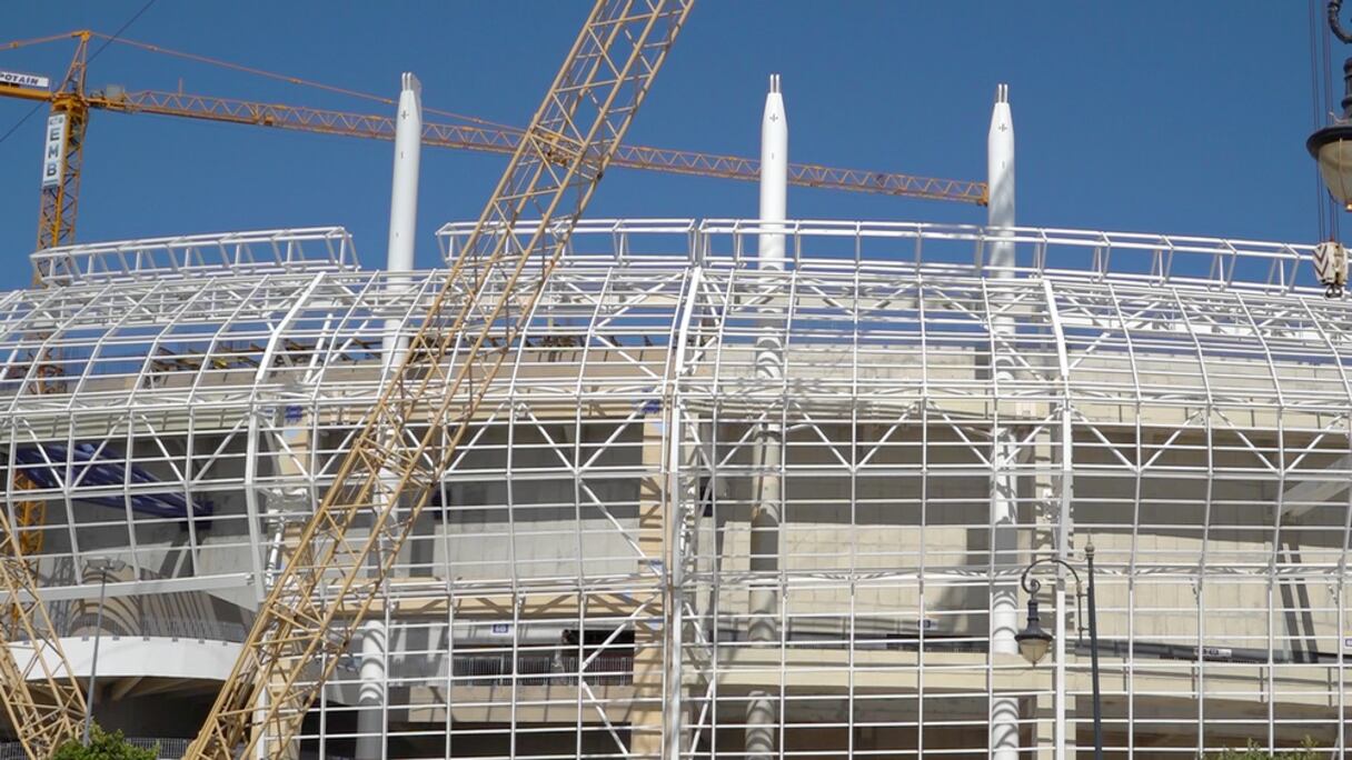 ووضعت رافعات كبرى هذه الأعمدة العملاقة بالجزء الجنوبي من الملعب، حيث جرى تركيب هذه الدعامات، التي توصلت بها الشركة المكلفة تمهيدا لانطلاق عملية التسقيف.