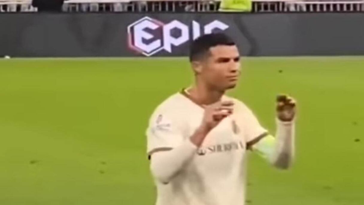 عبر الدولي البرتغالي، كريستيانو رونالدو، لاعب فريق النصر السعودي، بطريقة غريبة عن امتعاضه من الجماهير بعد هتافهم باسم الدولي الأرجنيتني ليونيل ميسي، خلال مواجهة الاحاد برسم الجولة الـ 20 من الدوري السعودي لكرة القدم.