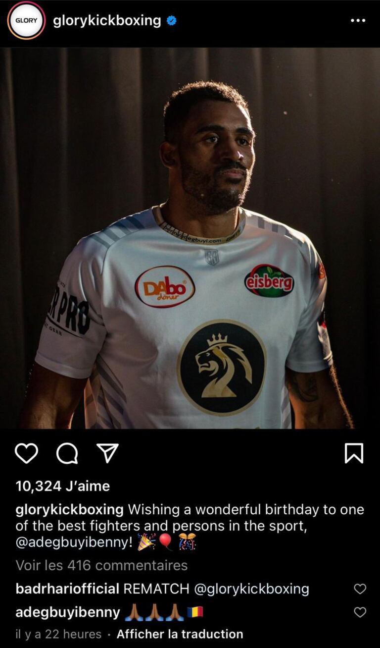 وعلق البطل العالمي على صورة نشرتها منظمة ”غلوري“ يتواجد بها الروماني بنجامين أديغبويي، قائلا: ”إعادة النزال“، وذلك في إشارة منه إلى استعداده لخوض نزال جديد أمام أديغبويي.
