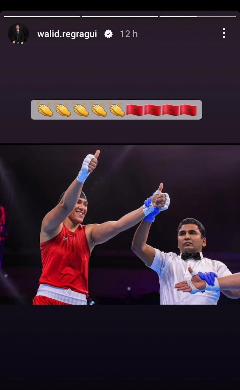 و تفاعل مدرب "الأسود" مع تتويج المرضي ببطولة العالم، حيث نشر عبر حسابه بإنستغرام صورة لها من النزال وأرفقها بإيموجي .. التصفيق بحرارة، والعلم المغربي".