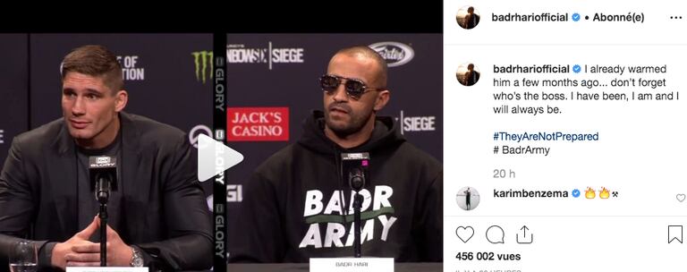 ونشر البطل المغربي فيديو للندوة الصحفية التي جمعته بريكو عبر حسابه الرسمي على موقع التواصل الإجتماعي ”أنستغرام“، ما جعل الفرنسي كريم بنزيما، مهاجم فريق ريال مدريد الإسباني لكرة القدم، يتفاعل مع تدوينة هاري معبرا له عن مساندته في هذا النزال.