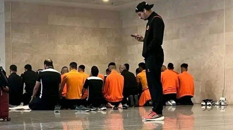 وأدى لاعبوا نهضة بركان صلاة الجمعة داخل مطار الجزائر بعدما منعته سلطات الجزائر من مغادرته بسبب الأقمصة.
