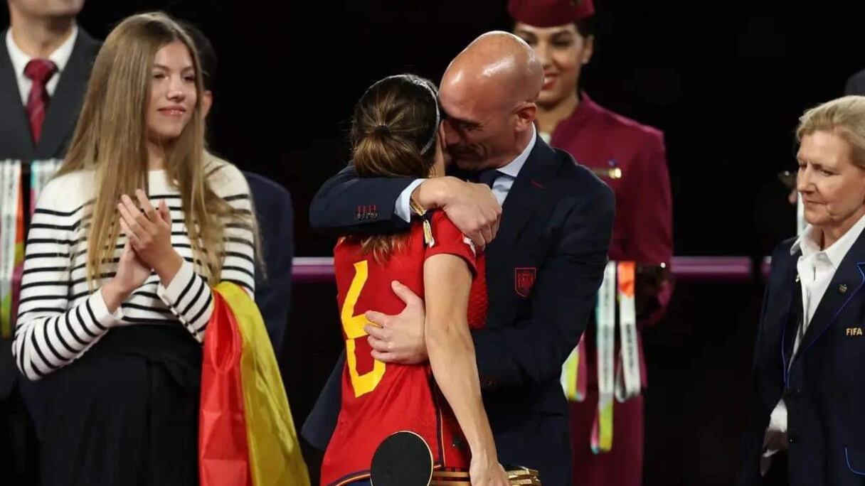 وبعد دقائق قليلة من فوز "لا روخا" باللقب العالمي في 20 آب/أغسطس في سيدني، قبل روبياليس اللاعبة رقم 10 هيرموسو على شفتيها على حين غرة، مما أثار سخطاً دولياً ودفع الاتحاد الدولي الى التدخل بإيقاف رئيس الاتحاد الإسباني لتسعين يوماً.