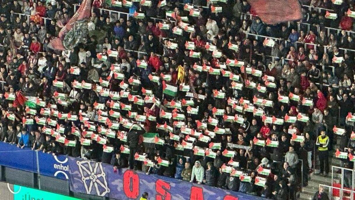 وحرصت جماهير أوساسونا، على دعم الفلسطنيين من خلال رفع علم بلادهم فى مدرجات ملعب "أل سادار"، لدعم ضحايا الهجوم الغاشم لقوات الاحتلال .