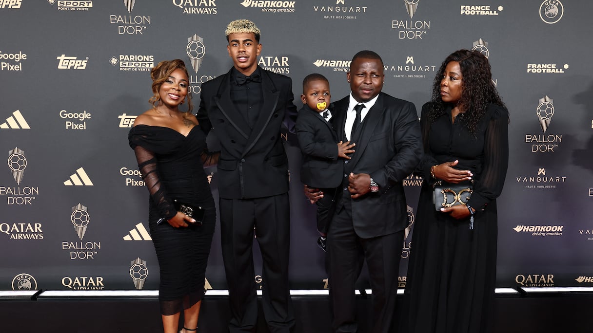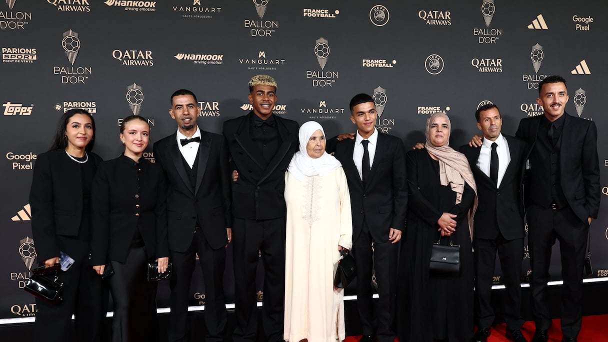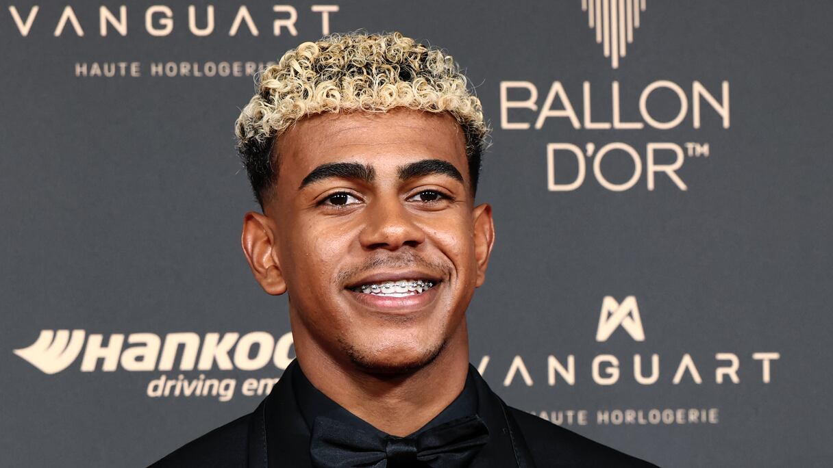 L'attaquant du FC Barcelone Lamine Yamal pose à son arrivée avant la cérémonie de remise du Ballon d'Or 2025 au Théâtre du Châtelet à Paris le 22 septembre 2025.. AFP