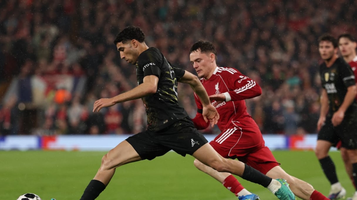على ملعب انفيلد، فرض عثمان ديمبيليه، الفائز بجائزة الكرة الذهبية لأفضل لاعب في العالم، نفسه نجما للمباراة بتسجيله هدفي فريقه في الدقيقتين 72 و90+1 وقاده إلى الدور نصف النهائي، بعدما كان النادي الباريسي قد حسم مباراة الذهاب لصالحه بالنتيجة ذاتها.