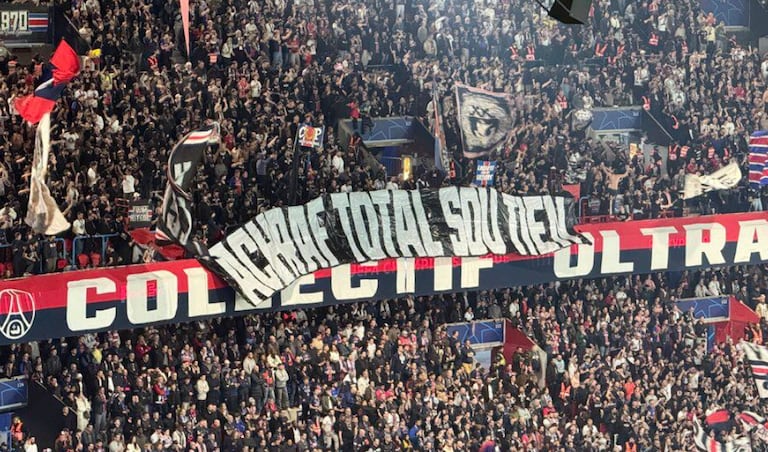 ورفع أنصار النادي الباريسي خلال مواجهة باريس سان جيرمان أمام موناكو في دوري أبطال أوروبا، لافتة كبيرة في مدرج “فيراج أوتوي” حوالي الدقيقة العشرين، مرفوقة بهتافات داعمة لنائب قائد الفريق، في رسالة تضامن مباشرة مع اللاعب الدولي المغربي.