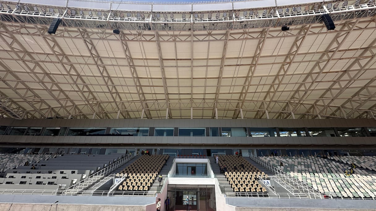 في الخارج، بدأت الواجهات الزجاجية الأولى ترسم الملامح العصرية للملعب، بينما تتواصل في الداخل الأشغال بوتيرة سريعة من أجل إتمام المشروع.