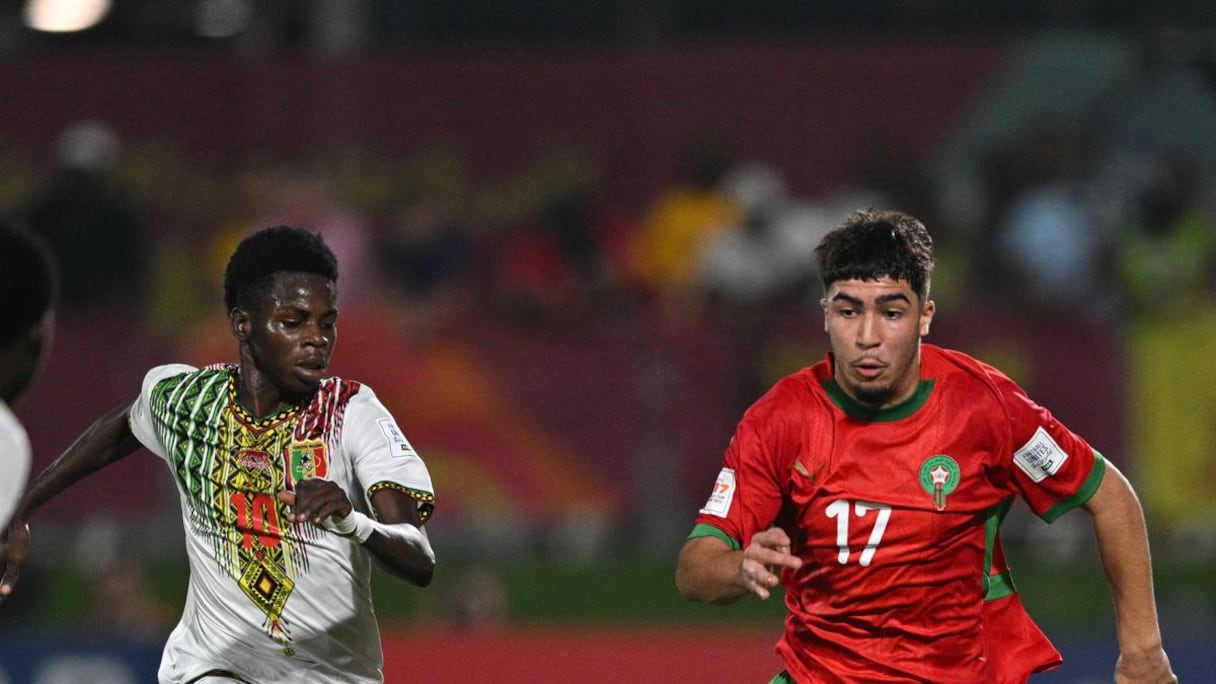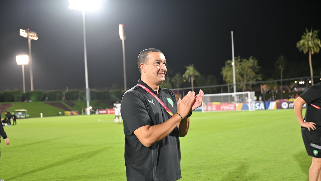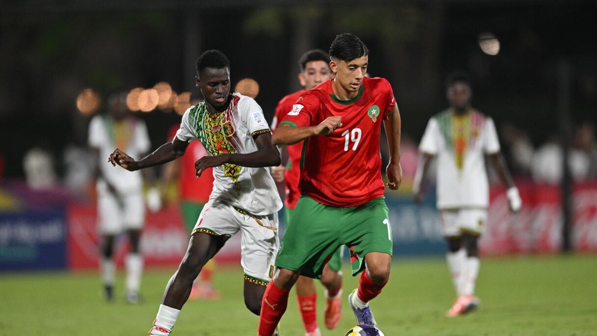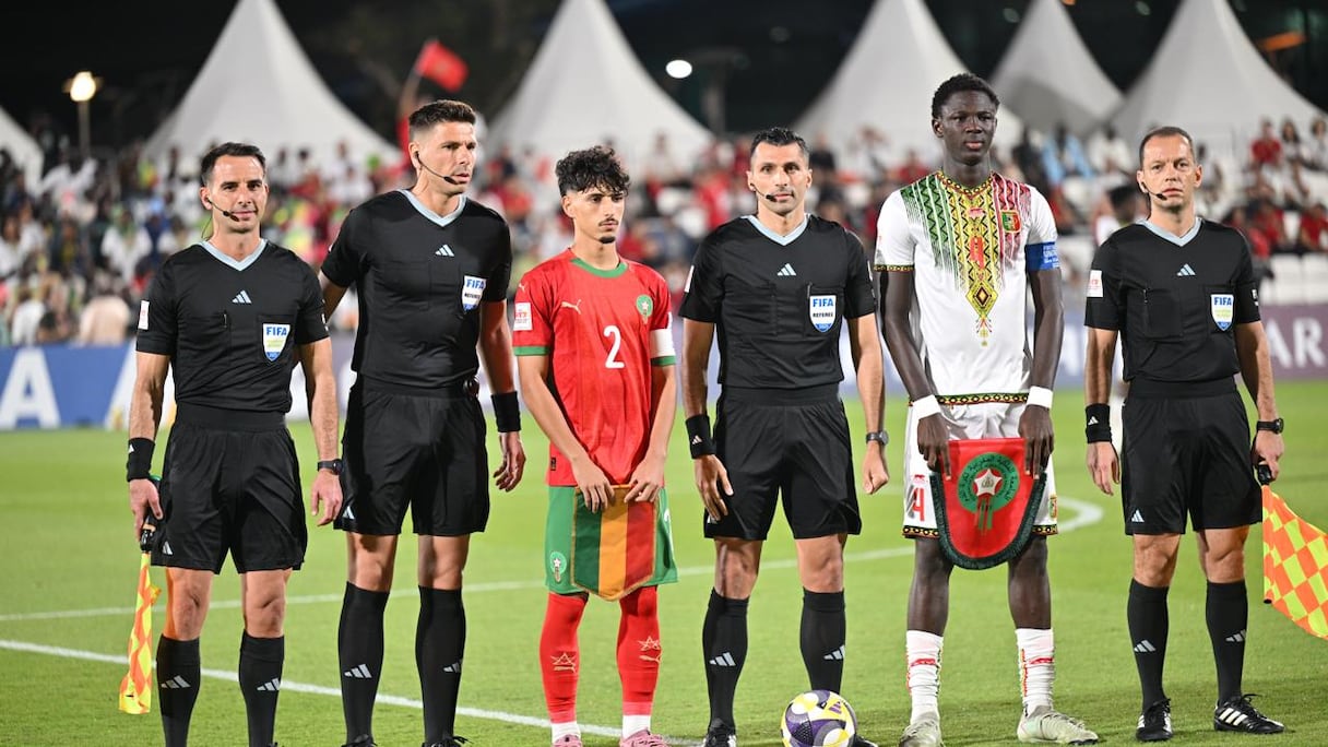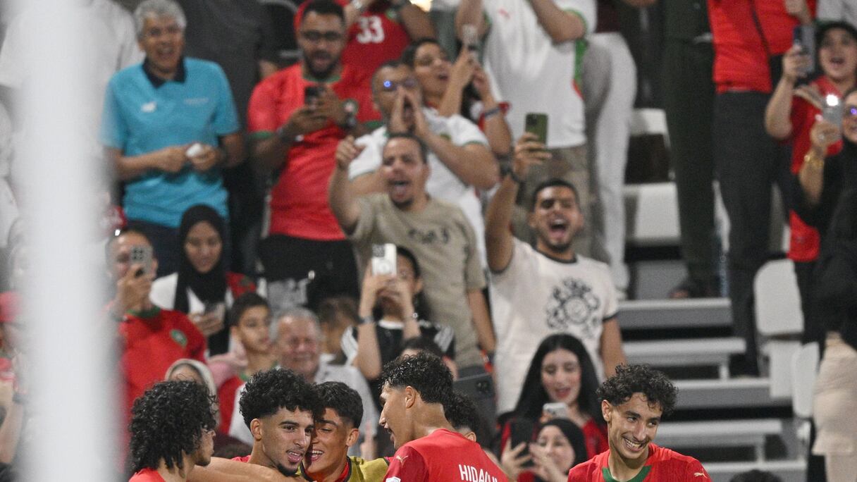 La joie des Lionceaux après Maroc-Mali (U17), 8e de finale de la Coupe du Monde Qatar-2025. FRMF