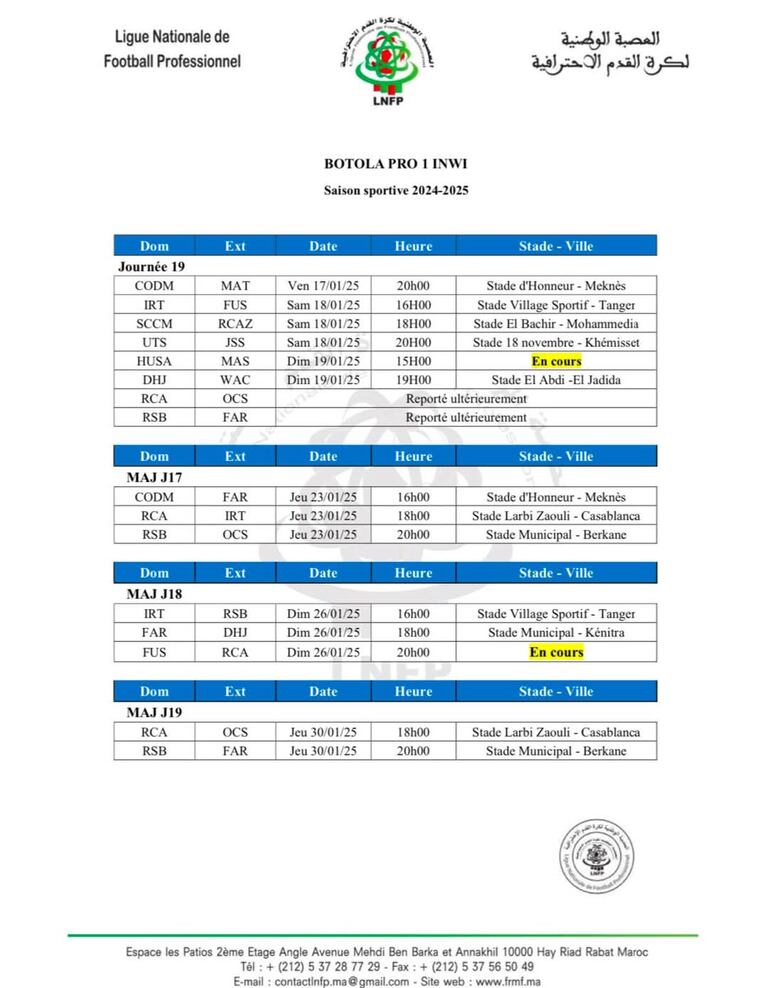 وستؤجل أيضا مباراة الجيش الملكي أمام نظيره نهضة بركان بسبب إلتزام الأندية الثلاثة بالمشاركة القارية.