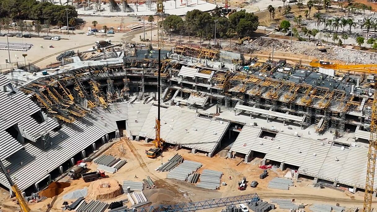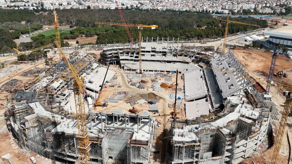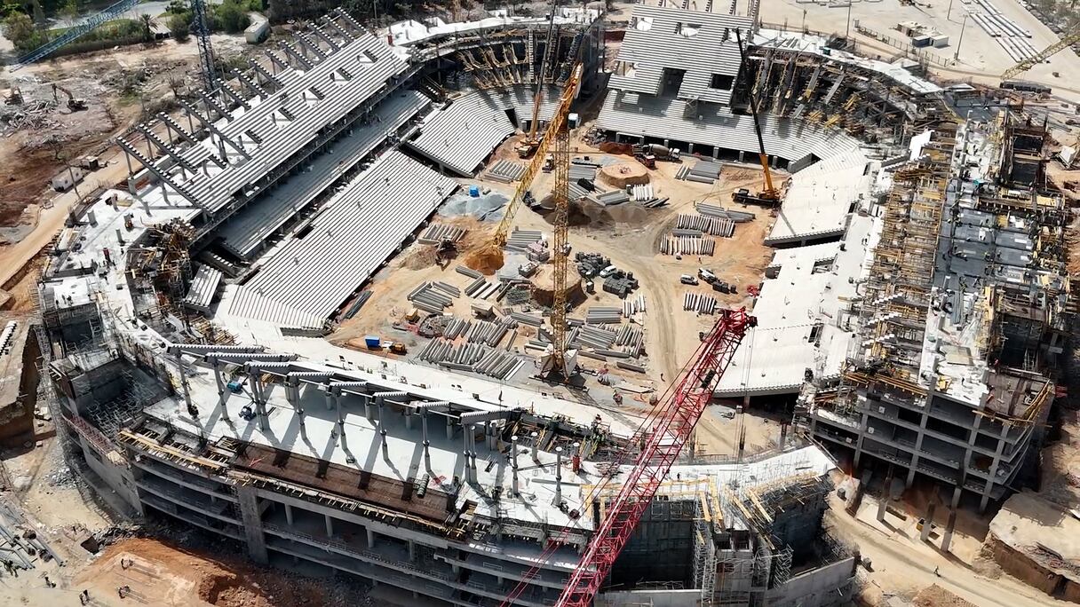 دعامات فولاذية عملاقة لتركيب السقف.. أشغال ملعب طنجة الكبير تبلغ مراحلها الأضخم. سعيد قدري