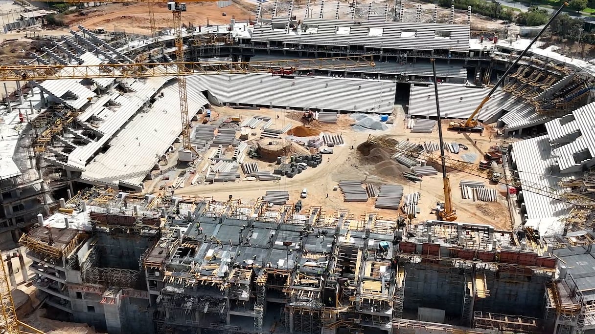 Le chantier du nouveau stade Moulay Abdellah vu du ciel. (Y. Mannan / Le360)