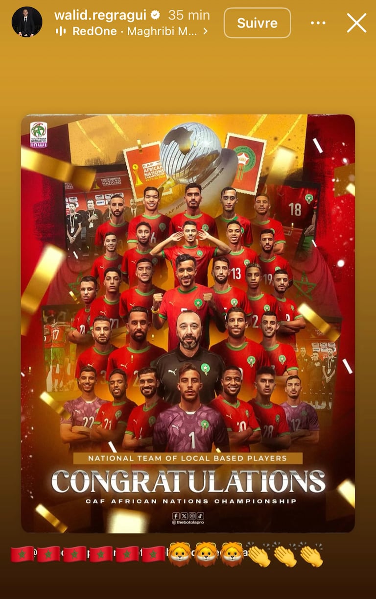 ونشر الناخب الوطني تهنئة خاصة لمكونات المنتخب المحلي، عبر حسابه الرسمي بموقع التواصل الاجتماعي « إنستغرام »، مرفوقة بصورة لمكونات « الأسود ».