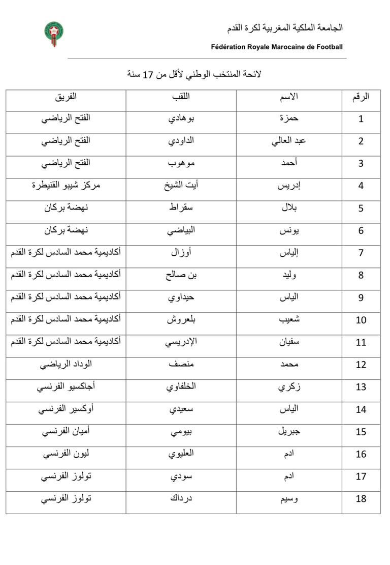 ولهذا الغرض، وجه نبيل باها، مدرب المنتخب الوطني لأقل من 17 سنة الدعوة إلى 29 لاعبا ويتعلق الأمر بكل من: