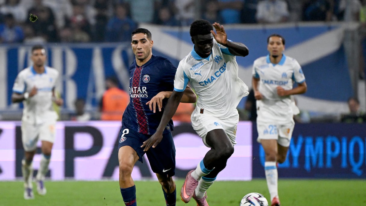 Achraf Hakimi lors du classique entre l'OM et le PSG. AFP