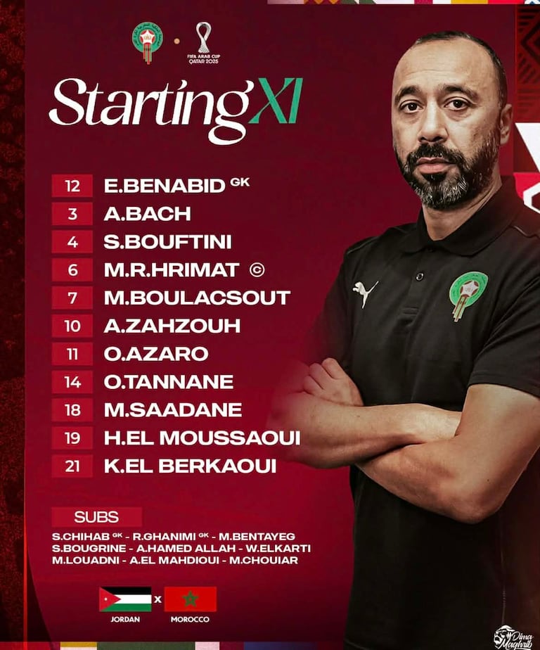 وقرر طارق السكتيوي، مدرب « الأسود » الدخول بالتشكيلة الآتية: