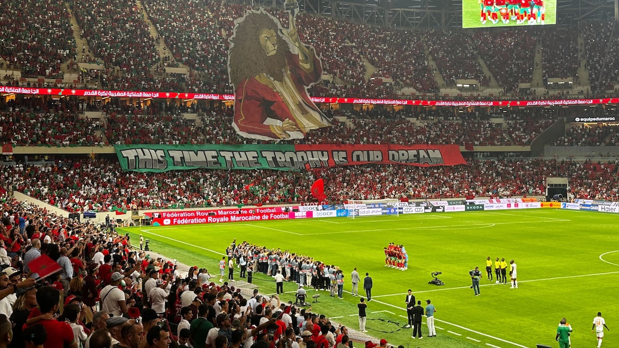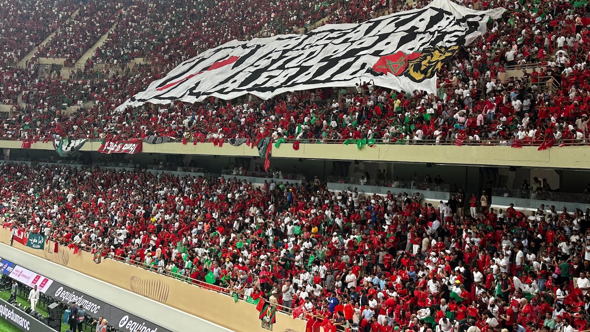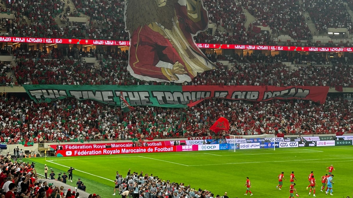 وقبيل انطلاق المباراة التي جمعت بين المنتخب المغربي ونظيره النيجري، لحساب الجولة السابعة من التصفيات الإفريقية المؤهلة لكأس العالم 2026، رفرفت في المدرجات « تيفو » ضخم حبس الأنفاس، بألوان العلم المغربي الأحمر والأخضر، زين وسطه أسد أطلسي يرتدي لباسًا تقليديًا مغربيًا ويحمل كأس أمم إفريقيا بين يديه، في إشارة قوية إلى التحدي المقبل الذي ينتظر المنتخب الوطني في « كان 2025 » المرتقب على أرض الوطن.