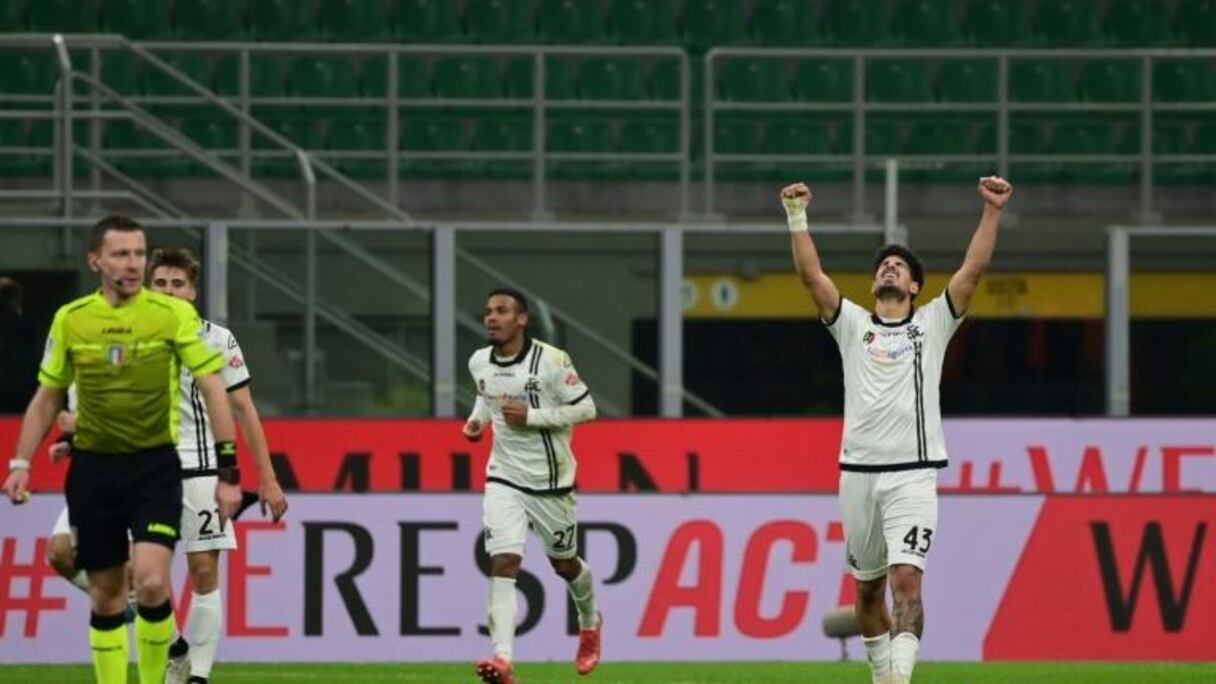 أهدر ميلان فرصة ذهبية لاعتلاء صدارة الدوري الايطالي لكرة القدم بعدما سقط بشكل صادم على أرضه امام سبيتسيا 1-2 الإثنين في ختام منافسات المرحلة الثانية والعشرين.