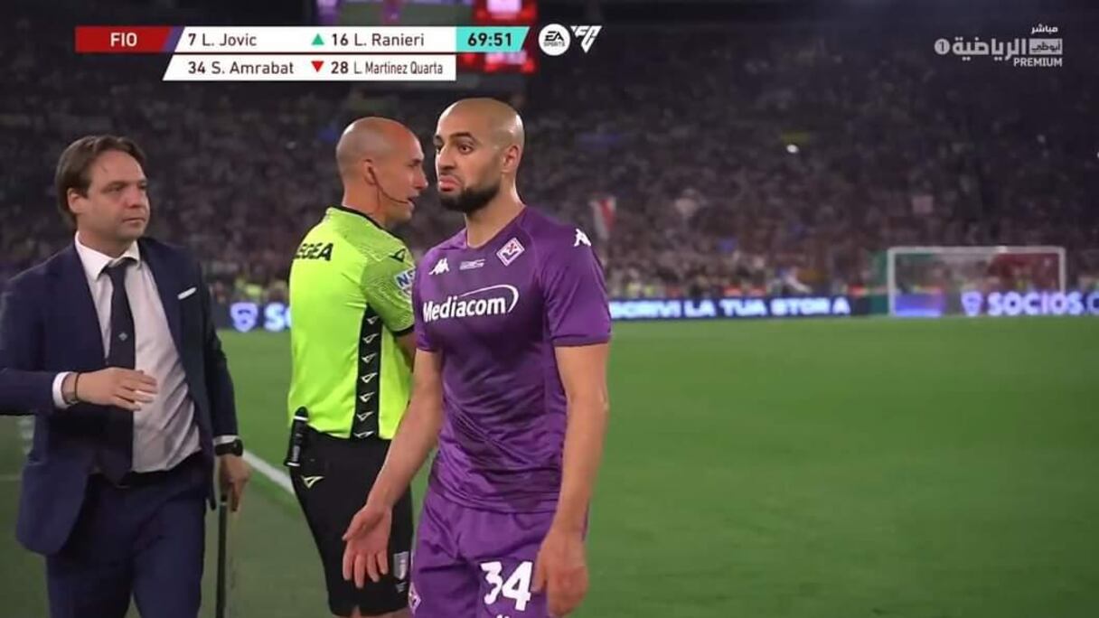 تداول رواد مواقع التواصل الاجتماعي فيديو للحظة استبدال الدولي المغربي سفيان أمرابط، لاعب فريق فيورنتينا الإيطالي لكرة القدم، أمام إنتر ميلان وسط استغرابه.