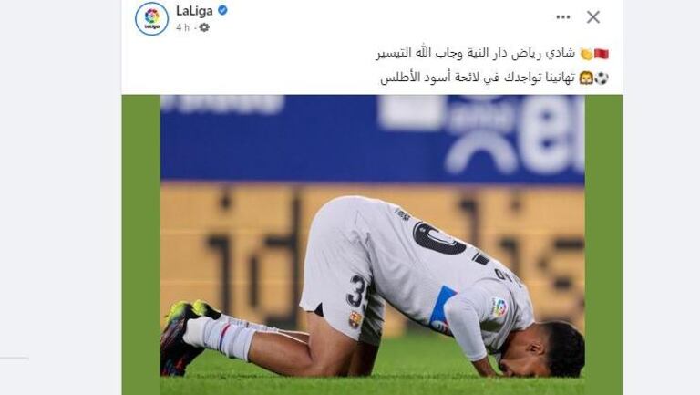 ونشرت صفحة "الليغا" صورة للاعب المغربي، وعلقت عليها بـ "شادي رياض دار النية وجاب الله التيسير، تهانينا تواجدك في لائحة أسود الأطلس".
