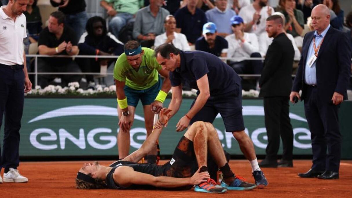 وحسم نادال الذي يحتفل الجمعة بميلاده السادس والثلاثين، المجموعة الأولى بصعوبة بالغة 7-6 (10-8) ثم عانى كل من اللاعبين على إرساله في المجموعة الثانية التي وصلت الى شوطها الثاني عشر والتعادل 6-6، قبل أن يتعرض زفيريف لإصابة قوية في كاحله الأيمن ما اضطره لمغادرة الملعب على كرسي متحرك قبل أن يعود ابن الـ25 عاماً لاحقاً على عكازين لإعلان انسحابه.
